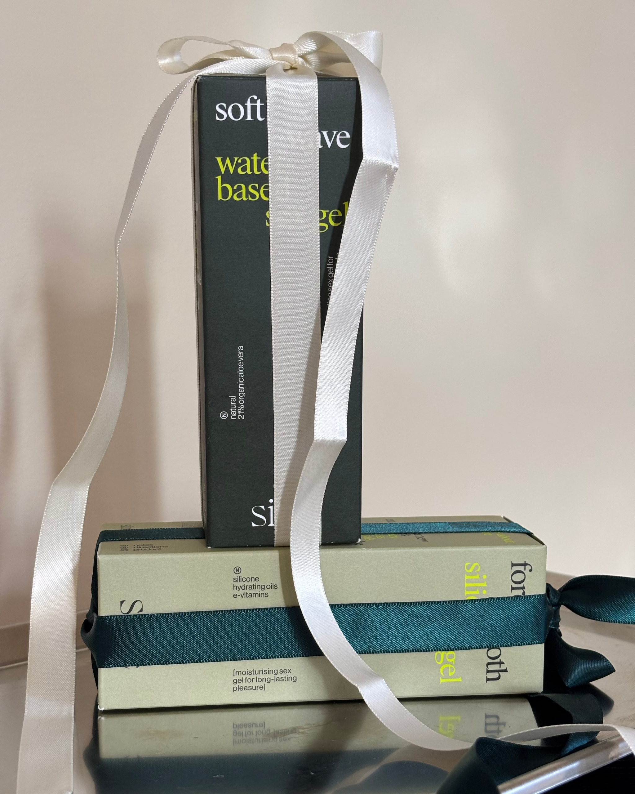 soft wave is our water-based gel with a natural, silky feel that hydrates and supports the intimate areas. forever smooth is our silicone gel made with olive-derived oils and vitamin e for a long-lasting, smooth glide that stays with you.